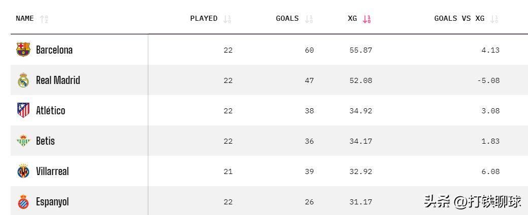 但他们实际只打入了26个,浪费5.17个预期进球,这说明他们的射门技术是不过关的。
